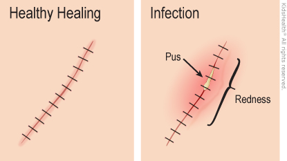 Often a laceration (cut) needs stitches to bring the two sides of skin closer together. Some stitches need to be removed, but others dissolve on their own. Most cuts will leave a small scar. A healing cut can get infected, so the health care provider cleaned it carefully. You can help to prevent infection by taking good care of the cut as it heals.