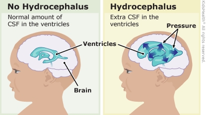 Hydrocephalus is a buildup of cerebrospinal fluid (CSF) in spaces deep within the brain. These spaces are called ventricles. The buildup of CSF can put pressure on the brain and cause symptoms. Treatments for hydrocephalus usually can lower the amount of CSF.