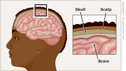 Does swelling of the scalp mean that there is swelling of the brain? No, swelling of the scalp does not mean there is any swelling of the brain. The skull bone separates the scalp from the brain and protects it from injury.
