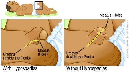 Hypospadias is a birth defect in which the tube (the urethra) that carries urine (pee) out of the body doesn't reach the tip of the penis. Instead, the opening of the urethra (the meatus) is along the underside of the penis. The penis also might be curved. Surgery usually is needed to fix hypospadias.