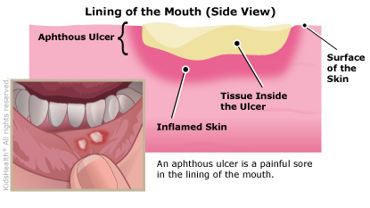 Canker sores, also called aphthous (AF-thiss) ulcers or mouth ulcers, are painful open sores that form in the lining of the mouth. The sores can be treated with medicines and usually go away in a week or two. Follow the instructions below to help your child feel better while the sores are healing.