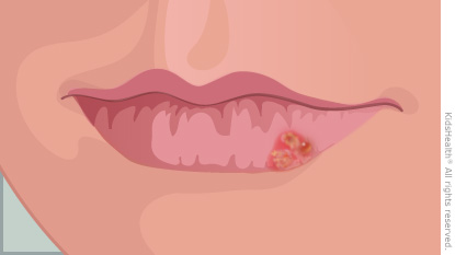 A cold sore (also known as a fever blister) is a small, painful blister on or near the lips. Cold sores usually go away on their own within 1–2 weeks. Sometimes, prescription medicine is used to help them go away faster. The virus that causes cold sores is contagious, so it's important to help prevent it from spreading.