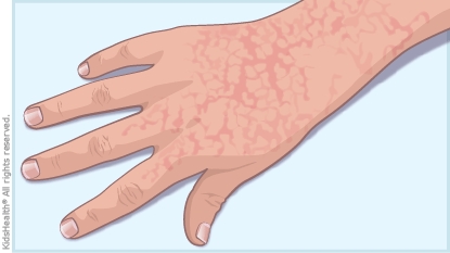 In some children, it starts with a few days of fever, runny nose, headache, or stomach pain. Then a rash appears. The most recognizable symptom of fifth disease is a rash on the face that looks like "slapped cheeks," which might be harder to see on darker skin. After the face rash, another rash appears on the chest, back, buttocks, or arms and legs. This rash has a lacy pattern, and it may come and go over weeks or months. Sometimes kids with fifth disease have joint pain, but this is usually more of a problem in teens or adults. Some kids who are infected with parvovirus B19 never have any symptoms.