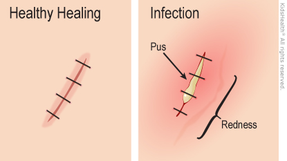 When a child gets a laceration (cut) on the chin, a health care provider will carefully check it and examine the jaw to see if the bone was injured. Often, a cut needs stitches to bring the two sides of skin closer together. Most cuts will leave a small scar. A healing cut can get infected, so the health care provider cleaned it carefully. You can help to prevent infection by taking good care of the cut as it heals.