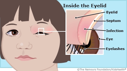 Periorbital cellulitis (also called preseptal cellulitis) is an infection of the eyelid and area around the eye caused by bacteria (a type of germ). It causes swelling and redness of the eyelid, and sometimes fever and eye discomfort. When treated with antibiotics, the infection usually improves quickly. But it's important to watch carefully for signs that the infection isn't getting better or has spread. Follow these instructions to care for your child.