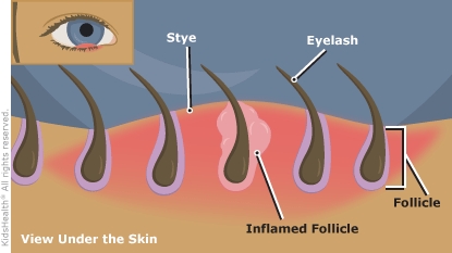What causes a stye? A stye (also called a "sty" or "hordeolum") is caused by inflammation and infection of a small oil gland or an eyelash follicle under or along the edge of the upper or lower eyelid.