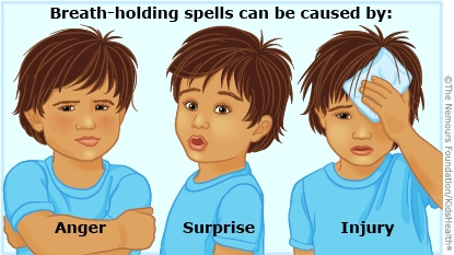 A breath-holding spell is when a baby or child holds their breath, usually after being angry, frustrated, surprised, or in pain. Sometimes the breath-holding leads to the child passing out. It can be scary to watch a breath-holding spell, but they aren't harmful. Kids outgrow them by around 8 years old, and often earlier. Here's what to do if your child has a breath-holding spell.