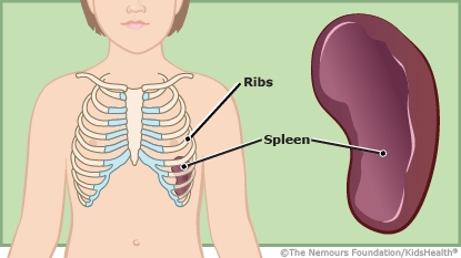 The spleen is a fist-sized organ in the upper left part of the belly under the ribcage. It helps the body fight infection and filters damaged cells. A blow to the belly or a big fall can bruise or tear (lacerate) the spleen. Kids with a spleen injury are watched in the hospital for internal bleeding. Most spleen injuries heal on their own, but some might need surgery.