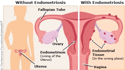 Endometriosis (en-doh-mee-tree-OH-sis) happens when tissue that normally lines the uterus (the endometrium) grows outside of it. The growths cause pain and other symptoms. Treatment with hormone medicine (for example, the birth control pill) and medicines to ease pain and inflammation can help. Sometimes surgery is needed.
