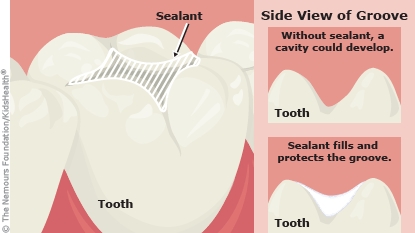 Dental sealants are a thin coating put on the back teeth to help prevent cavities from forming. Even with sealants, cavities can still happen, so your child still needs to brush and floss regularly, have regular dental checkups, eat a healthy diet, and limit sweets.