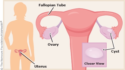An ovarian cyst is a fluid-filled sac that forms on or in an ovary. Depending on your child's age, the size and type of cyst, and whether the cyst is causing belly pain or other problems, the health care provider may recommend: