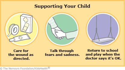 You can now care for your child at home. They will need your support as they recover. It's important to follow your health care provider's instructions so that the wounds continue to heal and don't get infected.