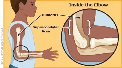 A supracondylar (soo-pruh-KON-deh-ler) fracture is a break in the bone right above the elbow. Your child got a cast or splint, along with a sling to support it. If a splint was used, an orthopedic (bone) specialist will replace it with a cast in a few days when the swelling goes down. You can help your child by going to all follow-up visits and taking good care of the cast or splint.