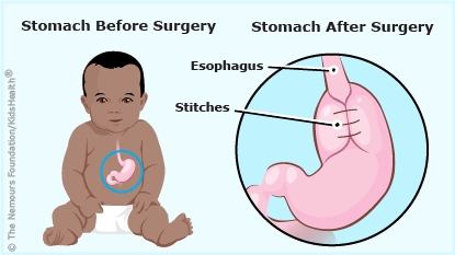 What happens during Nissen fundoplication? The child gets anesthesia medicines to sleep during the surgery and not feel pain. Then, the surgeon wraps the top part of the stomach around the lower esophagus.
