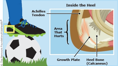- If an activity causes pain or swelling, your child should stop doing it and put ice wrapped in a towel on the heel for about 20 minutes. They should continue icing several times a day for a few days. They can try the activity again after the heel stops hurting or switch to a less intense activity.