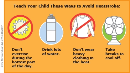 How can we prevent heatstroke and other heat illnesses? Encourage your kids to: