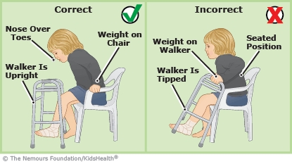 A walker helps kids who have trouble walking or keeping their balance get around. Here's some information to help your child use the walker for walking and getting in and out of a chair. Talk to your health care provider about whether your child should work with a physical therapist to learn how to use the walker in other situations, such as using the toilet and going up and down a curb.