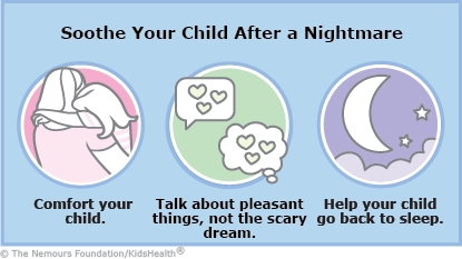 A nightmare is a scary or upsetting dream that usually wakes a person up. It's normal for kids to have nightmares occasionally. You can't completely prevent nightmares, but you can help make them less likely. And if your child does have one, you can comfort them and help them get back to sleep.