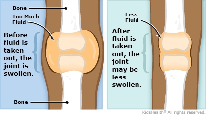 When a joint is swollen or painful, taking a sample of synovial fluid can help a health care provider find the cause of the problem. To get the synovial fluid sample, your child's health care provider carefully inserted a needle into the joint. The health care provider may have used ultrasound to help see inside the joint and guide the needle to the right place. Before putting the needle in, the health care provider may have numbed the skin and/or given your child medicine to relax or sleep through the procedure. After taking the sample, the health care provider put a bandage on the joint.