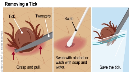 - Check to see if any parts of the tick remain in the skin. If so, call your health care provider.
