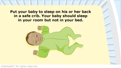 Keep the crib or bassinet in the room where you sleep. Don't have your baby sleep in bed with you.
