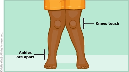 Knock knees — or genu valgum (GEE-noo VAL-gum) — is when a person stands with straight legs and the knees touch but the ankles are apart. Young kids often have knock knees. They are rarely serious and usually go away without treatment by the time a child is 7 or 8 years old.