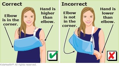 - To help with swelling and keep your child more comfortable, be sure they keep the hand higher than the elbow.