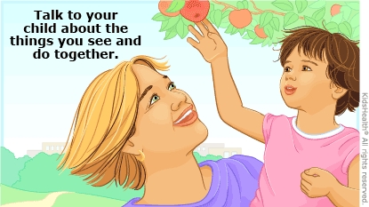 To communicate means to share thoughts, ideas, and feelings. We communicate through sounds, words, facial expressions, body language, and touch. Children this age learn new words quickly, and they get better at putting words together to make sentences. You can help your child's communication skills develop by speaking, reading, and singing together every day.