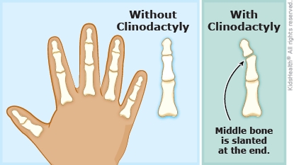 Clinodactyly (kly-noh-DAK-tuh-lee) is a sideways curve in one or more fingers. It is present at birth. Clinodactyly doesn't usually lead to problems or need to be treated.
