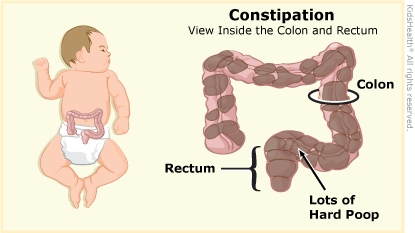 Constipation means having fewer bowel movements (poops) than usual, or having dry poops, or hard poops. Constipation in babies usually gets better with fruit juices and foods with fiber, like puréed fruits and vegetables and whole-grain cereals. Follow your health care provider's advice on how to treat your baby's constipation.
