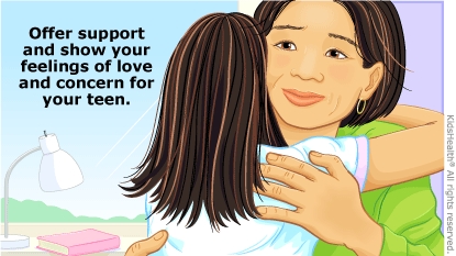 - Show your love. Depending on what your teen is comfortable with, this might mean giving them a hug, spending time together, or listening to their feelings. Listen, comfort, offer your support, and show love.