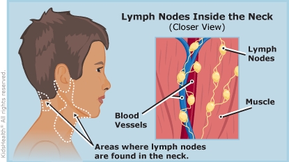 Cervical adenitis (ad-ih-NYE-tis) is when a lymph node in the neck gets infected with bacteria. Lymph nodes are small, bean-shaped organs. They are part of the body's immune system and help fight germs. If a lymph node gets infected, the skin over it feels warm and looks red. Health care providers prescribe antibiotics to treat the infection.