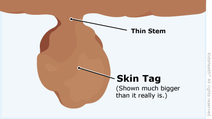 Who gets skin tags? Skin tags happen in all age groups, but less often in kids. They can run in families.