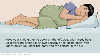 - Keep a bedpan or bucket nearby in case your child can't hold in the fluid.