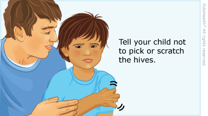 Hives are red, itchy bumps or raised areas on the skin. On darker skin, color changes can be harder to see. As some hives fade after hours or days, new ones tend to appear. "Chronic" means your child has had hives on most days for at least 6 weeks. Chronic hives usually go away, though it can take a long time. Medicines often help kids with hives feel better.