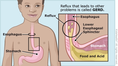 What is GERD? Gastroesophageal reflux — also called acid reflux or reflux — is when food and acid from the stomach go back up into the esophagus (the tube that runs from the mouth to the stomach), and sometimes out the mouth or nose. Reflux that makes a child very uncomfortable or leads to poor growth or other problems is called gastroesophageal reflux disease (GERD).