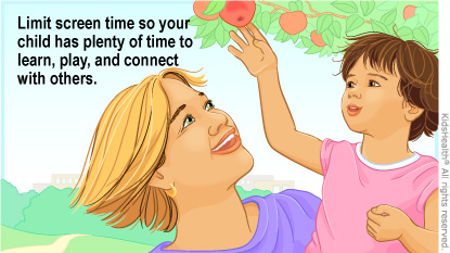 Screen time (also called media use) is when someone is using a screen such as a computer, tablet, phone, TV, or other device. It includes activities such as videos, social media, texting, apps, and games. Screens are a big part of kids' lives, for learning, playing, and connecting with others. But too much screen time can make it hard for them to get enough physical activity and sleep, and to do other activities. These tips can help kids find a healthy balance.