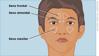 Las infecciones de los senos paranasales, que también reciben el nombre de sinusitis, son infecciones en uno o más de los senos paranasales. Los senos paranasales son espacios huecos ubicados en los pómulos, en la frente y detrás de la nariz. Las infecciones suelen ser causadas por bacterias o por un virus (tipos de gérmenes). La mayoría de las personas que tienen una infección de los senos paranasales primero tuvieron un resfriado.