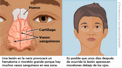 Una contusión nasal significa que hay un hematoma en la nariz. Cuando se recibe un golpe en la nariz, se produce una lesión en los vasos sanguíneos y la sangre puede filtrarse debajo de la piel. Esto causa una marca de color púrpura sensible al dolor, que recibe el nombre de "hematoma". Las lesiones en la nariz pueden provocar mucha inflamación y parecer graves, pero no suelen causar problemas a largo plazo. Usted puede ayudar a aliviar a su hijo mientras el hematoma se cura.