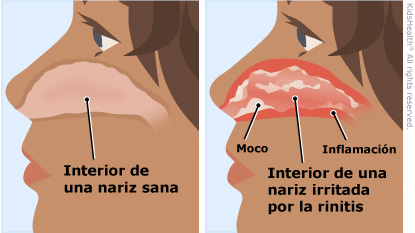 ¿Qué es la rinitis? Rinitis significa inflamación (irritación e hinchazón) de la nariz. Una nariz inflamada genera mucho moco. Por lo tanto, una persona que sufre de rinitis tendrá congestión nasal o goteo nasal. También es posible que estornude mucho y que tenga mucho moco que le cae por la garganta.