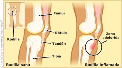 Los niños con enfermedad de Osgood-Schlatter tienen dolor de rodilla. También pueden presentar hinchazón que se siente como un bulto justo debajo de la rótula. El dolor y la hinchazón generalmente desaparecen cuando el adolescente termina de crecer (alrededor de los 14 a 18 años).