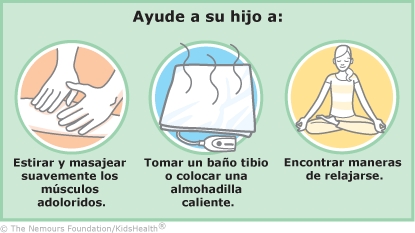 - Si a su hijo le duele el músculo debido a los calambres, puede probar lo siguiente: