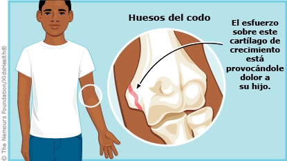 La apofisitis del epicondilo medial es una lesión por sobrecarga provocada por el esfuerzo sobre el cartílago de crecimiento de un hueso del codo. Los cartílagos de crecimiento son áreas ubicadas en el extremo del hueso que permiten su crecimiento.