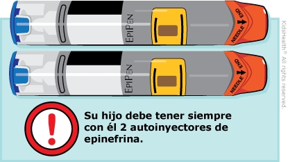 Algunos niños que han tenido reacciones alérgicas corren el riesgo de tener anafilaxis. Si su hijo está en riesgo, el profesional del cuidado de la salud se lo informó y le recetó autoinyectores de epinefrina.