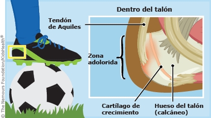 - Si una actividad le causa dolor o hinchazón, su hijo debe interrumpir esta actividad y colocarse hielo envuelto en una toalla sobre el talón durante unos 20 minutos. Debe continuar aplicando hielo varias veces al día durante algunos días. Puede intentar la actividad nuevamente después de que el talón deje de doler o cambiar a una actividad menos intensa.