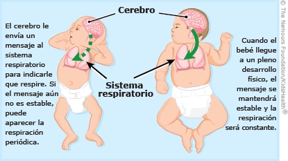 La respiración periódica es un patrón de respiración normal que tienen algunos bebés. El bebé deja de respirar durante 5 a 10 segundos; hace unas pocas respiraciones rápidas y superficiales, y después respira de forma pareja y regular. Este patrón puede repetirse varias veces. Suele ocurrir mientras el bebé está durmiendo y es más frecuente en los bebés prematuros (bebés que nacieron antes de término). Esto no significa que haya algo malo y no causa ningún problema. A medida que el bebé madura, los episodios de respiración periódica se vuelven menos frecuentes y suelen desaparecer por completo aproximadamente a los 6 meses de vida.