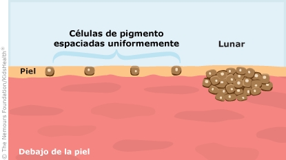 El nevo congénito es un lunar con el que nace el bebé o que aparece poco después del nacimiento. También se le llama "nevo melanocítico congénito". Los nevos congénitos pueden estar en cualquier parte del cuerpo y pueden ser pequeños o grandes. No está claro por qué se forman, pero los nevos congénitos ocurren cuando los melanocitos (células pigmentarias) se agrupan en las capas de la piel. El pigmento (color) puede hacer que los lunares luzcan diferentes tonos de tostado, marrón, negro o rojo. A veces pueden tener crecimiento de vello. Por lo general, un nevo congénito no es peligroso. Pero usted y el profesional del cuidado de la salud deben observar cuidadosamente el lunar porque, si bien es poco común, podría convertirse en cáncer.