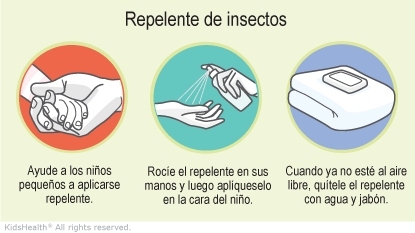 - No coloque repelente en las manos de los niños pequeños porque podrían llevárselas a la boca.
