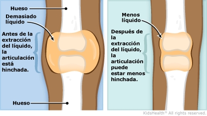 Cuando una articulación está hinchada o adolorida, tomar una muestra de líquido sinovial puede ayudar al profesional del cuidado de la salud a hallar la causa del problema. Para obtener una muestra de líquido sinovial, el profesional del cuidado de la salud de su hijo introdujo con cuidado una aguja en la articulación. Es posible que el profesional del cuidado de la salud haya empleado ultrasonido para poder ver dentro de la articulación y guiar la aguja hasta el lugar correcto. Antes de introducir la aguja, el profesional del cuidado de la salud puede haber adormecido la piel del niño o tal vez le haya dado un medicamento para relajarlo o dormirlo durante el procedimiento. Después de tomar la muestra, el profesional del cuidado de la salud le colocó una venda en la articulación.