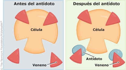 ¿Qué es un antídoto? Es un líquido elaborado a partir de anticuerpos (proteínas especiales que forman parte del sistema inmunitario) de animales que han estado expuestos a pequeñas cantidades de veneno de serpientes. Cuando se inyecta el antídoto en alguien que ha sido picado (mordido) por una serpiente venenosa, los anticuerpos se adhieren a las toxinas del veneno y evitan que dañen el cuerpo.